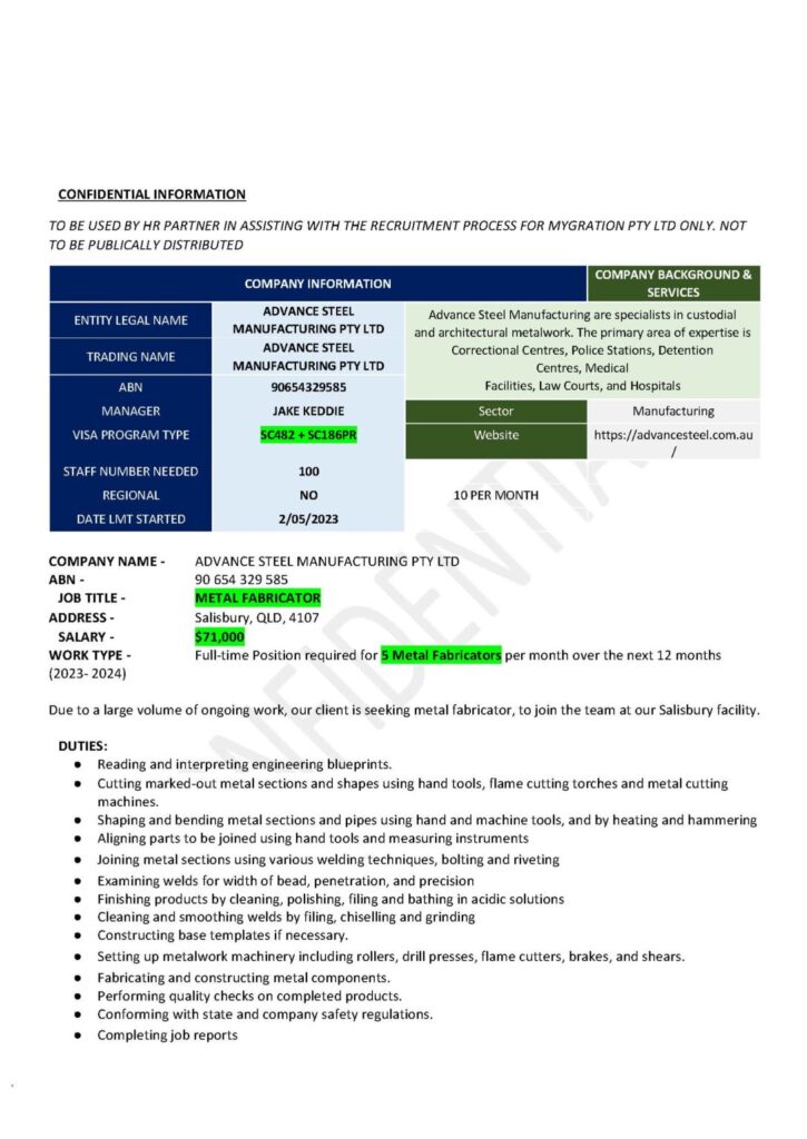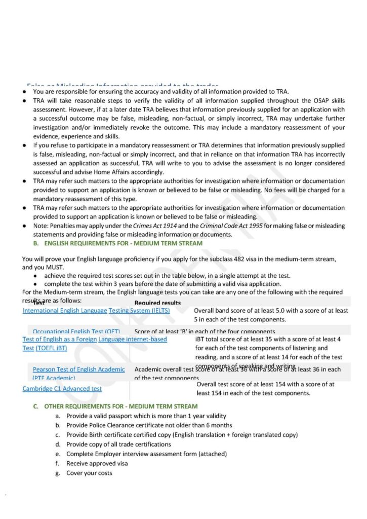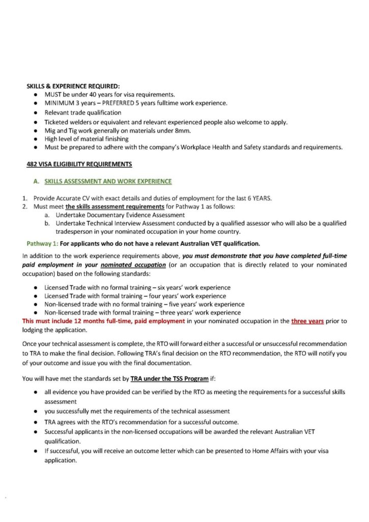 Cost of Skill Assessment for the 482 Meat Processing Visa