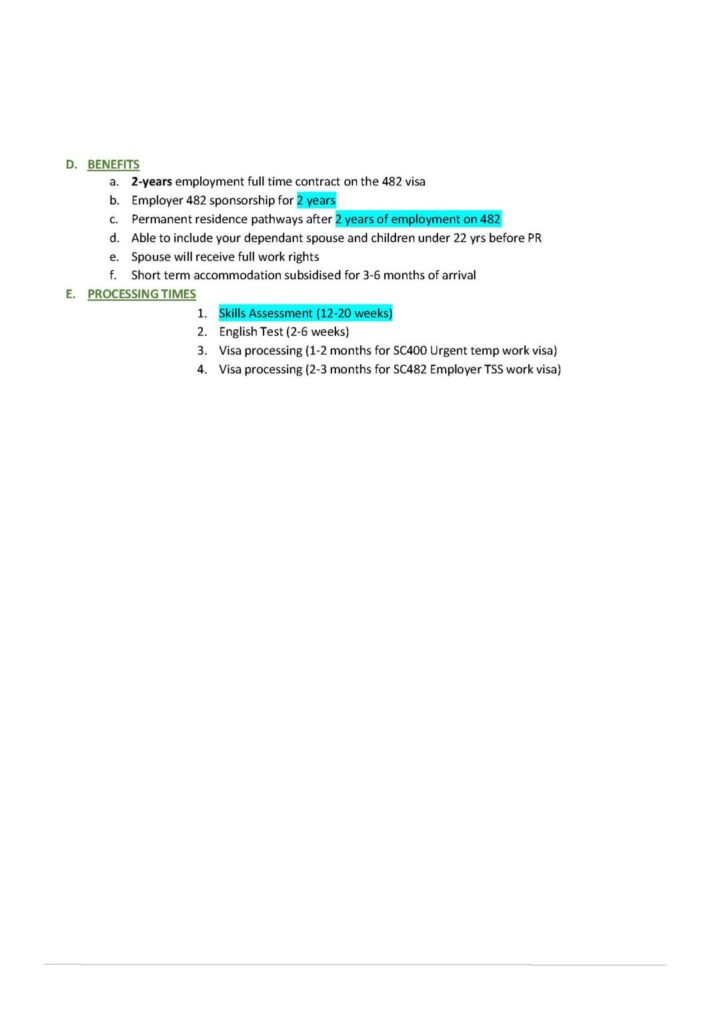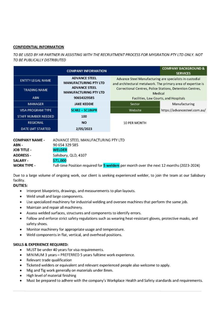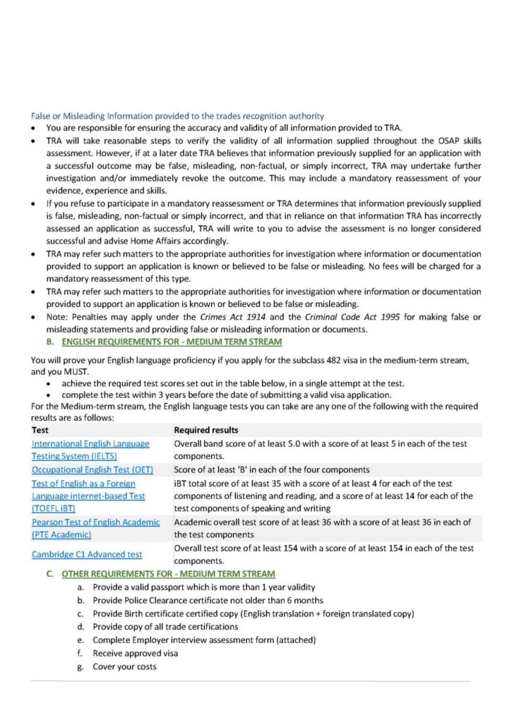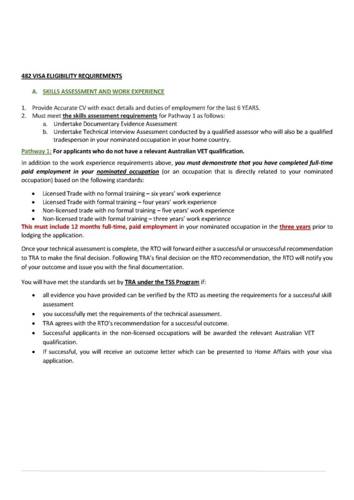 Cost of Skill Assessment for the 482 Meat Processing Visa